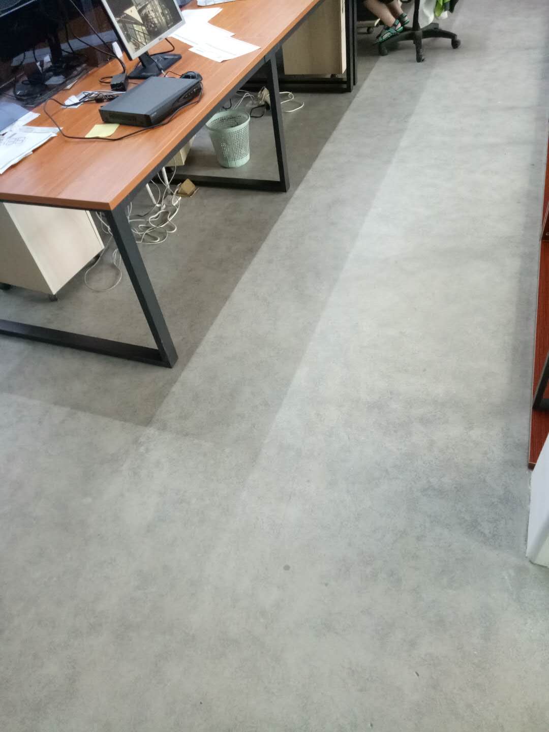 施麥貝仿清水混凝土漆,主要原材料為德國進口的礦物質(zhì)以及硅溶膠和無機色素組成。該產(chǎn)品的防塵性能比較好,地面清潔易清理。耐磨度也特別高,兩輛小汽車來回開50遍,表面沒有任何的起皮開裂情況。其中不含任何的化學有機原料,沒有環(huán)境方面的不良影響。